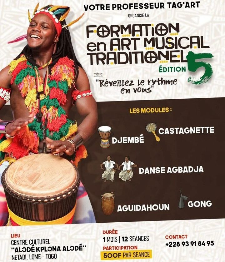À Lomé, la culture africaine continue de vibrer au rythme des tambours et des danses ancestrales. Le Centre culturel « Alodé Kplona Alodè », situé à Nétadi, accueille la 5ᵉ édition de la Formation en art musical traditionnel, une initiative portée par TAG’ART, acteur engagé dans la promotion et la sauvegarde du patrimoine culturel africain.